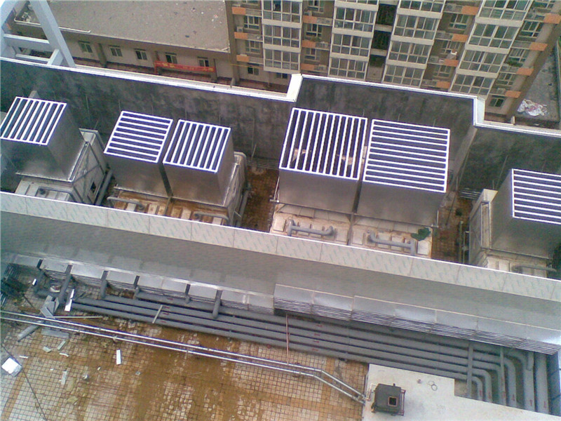 西元國際五樓平臺安裝有6臺RT橫流式冷卻塔系統和3組風冷渦旋機組。冷卻塔型號分別是RT-250U/DB RT-500/MB RT-1000/MB型 .該組冷卻塔距離居民樓約22米,居民樓為高層建筑。